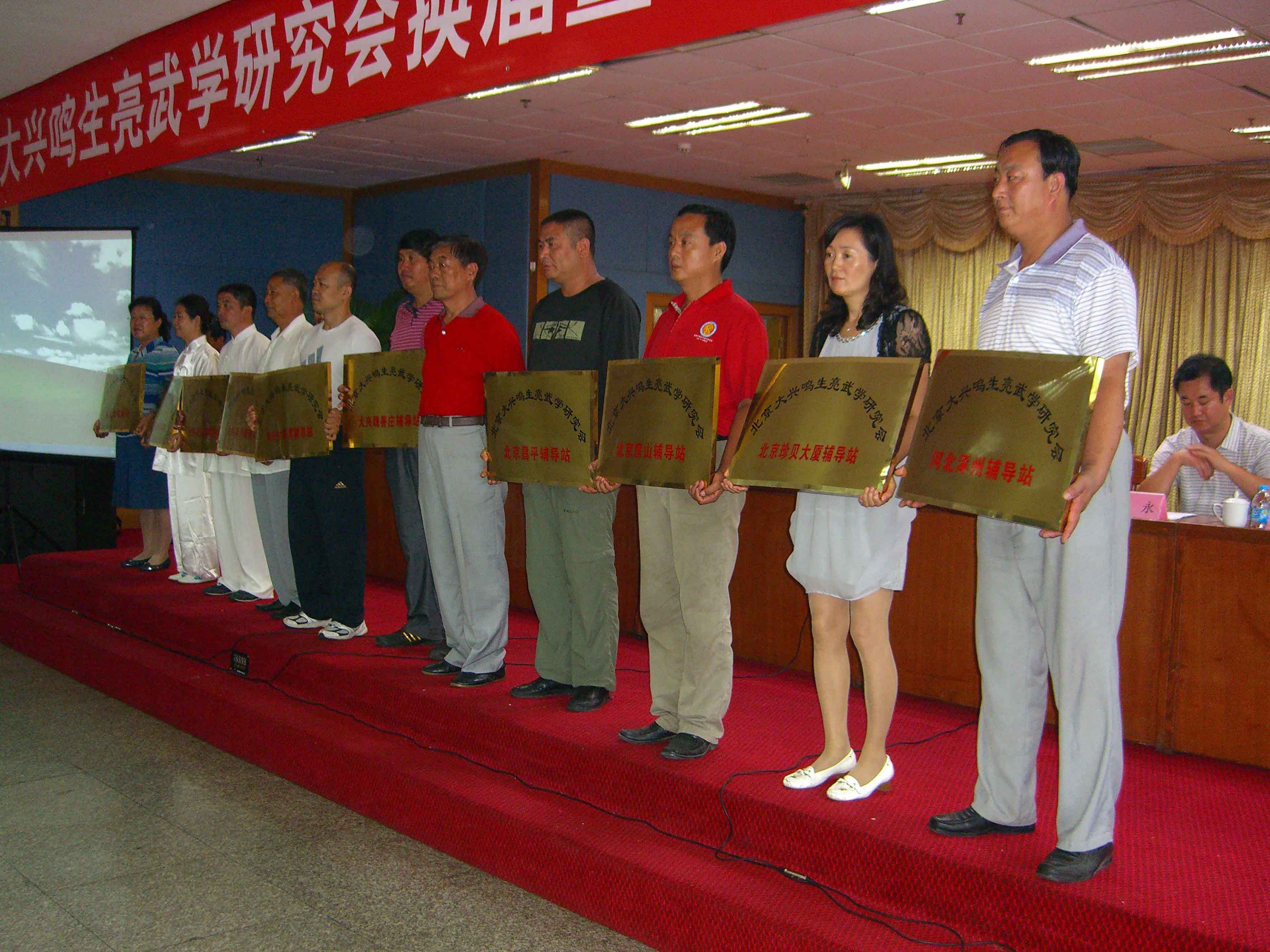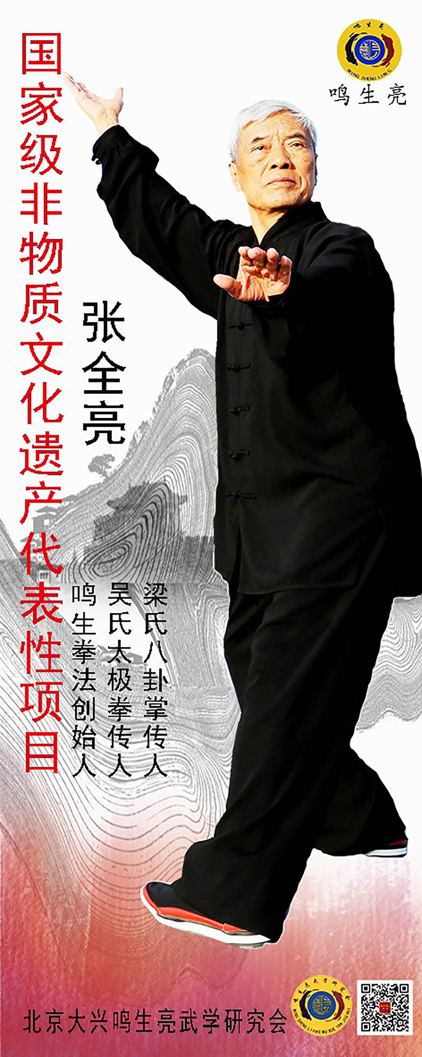 2005年我又成立了“北京大兴鸣生亮武学研究会”,“鸣”字代表我的梁式八卦掌恩师李子鸣先生,“生”字代表我的吴氏太极拳恩师王培生先生。“亮”是我的名字,乃弘扬光大之意。鸣生亮武学研究会就是以弘扬传播梁氏八卦掌、吴氏太极拳等传统武术和武术文化为主。到现在我这个研究会在全国包括国外已经发展到30多个下属传习组织和一百多个辅导站,整个形势还是不错的。我所传承的吴氏太极拳在北京地区已有万余人,全国包括海外、国外也有近10万人了。我所传承申报的吴氏太极拳已于2009年、2014年先后被评为市级和国家级非物质文化遗产代表性项目,2017年又经文化部推荐加入陈、杨、吴、武、赵堡、李氏、王其和式七大流派申报世界人类非遗的行列。