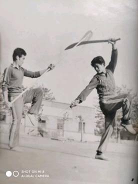 后记:我的故乡山东省滕州市是中国武术之乡,人才济济,英杰辈出。鲁南著名武术家杜传啟先生自幼习武,聪明过人,与1982年参加少林寺电影的未空和尚扮演者,全国九节鞭冠军,山东武术院高级教练杜传扬同乡、同族、同师。我与传啓先生多年挚友,上世纪八十年代初,杜传啓、张新平等好多学生参加山东省电视台在滕州微山湖上拍水浒《晁盖》,在滕州火车站下老体委广场汇报演出时,好多著名武术运动员与演员相继上场献技,南拳北腿,刀枪剑戟,真是龙腾虎跃,刀光剑影,第一次见到火龙拳,表演者身法灵巧矫健,左右滚钻盘旋,如游动之火龙,还有对剑表演也印象深刻。其中压轴戏是滕州两位优秀教练杜传啓与张新平大刀战枪。杜传啓老兄手持长枪,枪扎闪闪一线寒,如急风险象环生,大刀在他手中风驰电掣,如同风车,呼呼生风,矫似兔,稳似山,上场的传啓兄犹如猛虎下山,大有气吞山河之势。新平兄刀法凶狠,传啓兄枪灵活多变,棋逢对手无高低,将遇良才各显能。二人大刀战枪配合的天衣无缝,珠联璧合,观者惊心动魄。表演结束时,掌声响起,经久不息,四十年过去了,至今记忆犹新,难以忘怀。杨传啓先生虽名冠鲁南,但为人低调,谦虚好学,为求拳道真谛,国内遍访名家大师,功到上乘。山东省大洪拳非遗传人狄端珍先生高度赞扬他:文武兼备,德艺双馨的武术家。更令人尊敬的他是个大孝子。正是:忠孝传武德,处事仁义信。撰文:天石王成