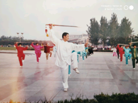 这个时期印象较深的还有,弟子们求教于天石王成先生,天石王成兄是出了名的练功狂,每天踢六千腿,十年无间断。把弟子让他指教主要是解决不肯用功且想得到功夫的巧想,天石兄映雪囊萤的练功经历,豪气横空的气势,叹为观止,赢得了弟子的高度赞誉,弟子们并从中悟到了实实在在的行武之法,现虽隔千里,经常通电…… 八十年代后期至九十年代中期,凡遇到各门派大师之日,即是求教之时。在潍坊,临沂,济宁等省运会期间,我率第子拜访过山东省体工大中国著名武术家周永福先生、王其曾先生,特别是六艺太极拳创编者,鸳鸯门第二代掌门人,原山东师范大学武术糸主任姜周存先生。记得运动会休息时间,我带陈敏前去找姜教授求教,十几人都在聆听教授讲解四十二式太极拳,我说明来意,并提到滕州原属济宁地区,教授(济宁人)听后更加热情,于是向教授求教了螳蜋拳技法。教授的朴实明快套路,正迎侧击,虚实相互的长打手,偷漏手,淋漓尽致。实属一堂精彩课,终生受益。