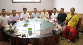 有时远水解不了近渴,众弟子求进心切,常想走出去见见世面,为满足他们的要求,我率弟子去枣庄向知名拳师张刚先生与褚衍春先生求教,张、禇俩先生乃杜心武先生的高足和万籁声先生的高足,人称金陵大侠王云霖大师的弟子,精通形意,八卦,太极,自然门功法,能得俩大师指教实属荣幸。虽面授不多,但其八卦掌功法得以真传,一走,二视,三坐,四翻,走转拧翻,幻变无穷。在这里感谢张、褚俩位先生了。