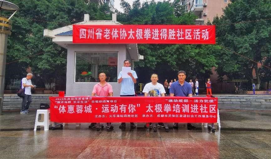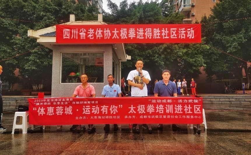 四川省老体协太极拳项目委员会、四川省老年人武术文化推广中心主、承办,得胜社区和兰天物业协办的2023年四川省老体协太极拳项目委员会太极拳进社区活动,于2023918日在蓝天小区广场隆重举办。有来自四川省老体协太极拳项目委员会部分会员、部分技术指导单位太极拳爱好者、得胜社区和蓝天小区及附近社区太极拳队员近百人参加。
