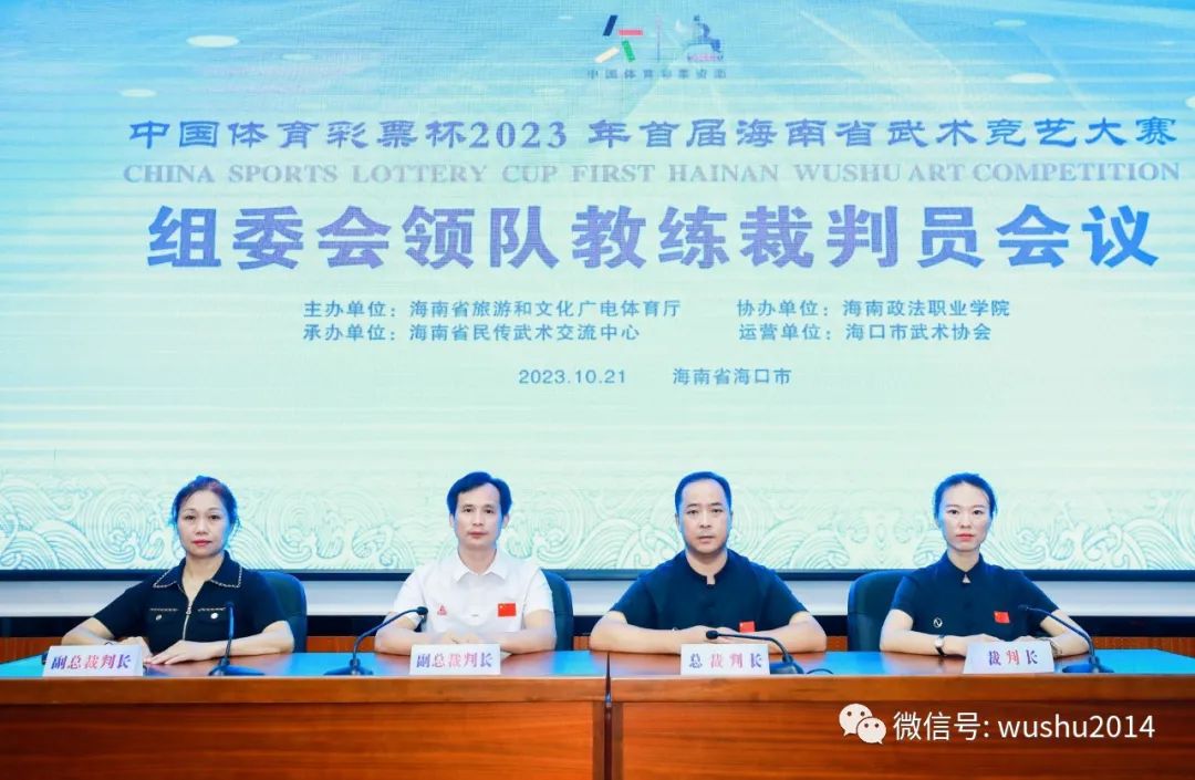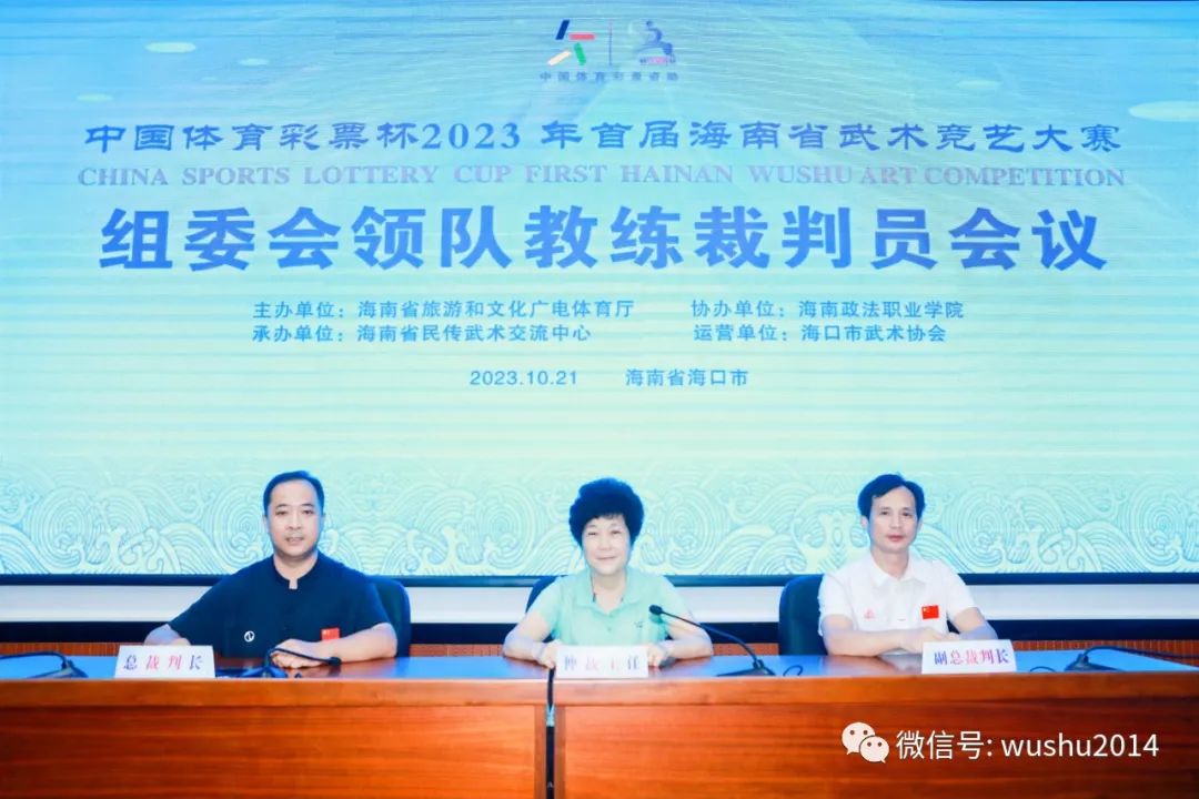1020日至22日,由海南省旅游和文化广电体育厅主办,海南省民传武术交流中心承办,海口市武术协会运营执行,海南政法职业学院协办,中国体育彩票资助,武术世界网全程推广“中国体育彩票”2023海南省武术竞艺大赛海口市隆重举行