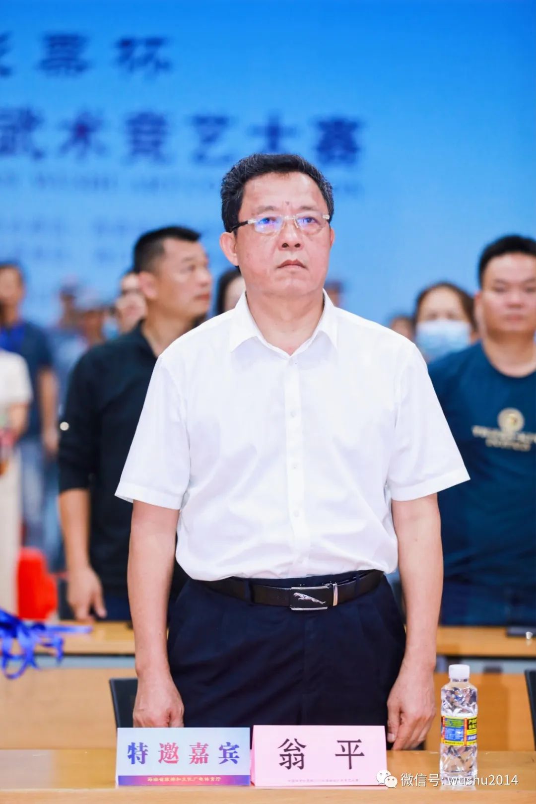 海南省旅游和文化广电体育厅群众体育处原一级调研员、本次大赛仲裁委员会主任蒙丽华,海南政法职业学院党委副书记翁平,海南省武术协会执行主席张锁柱,海南省民传武术交流中心主任、总裁判长马俊祥等领导和嘉宾出席开幕式