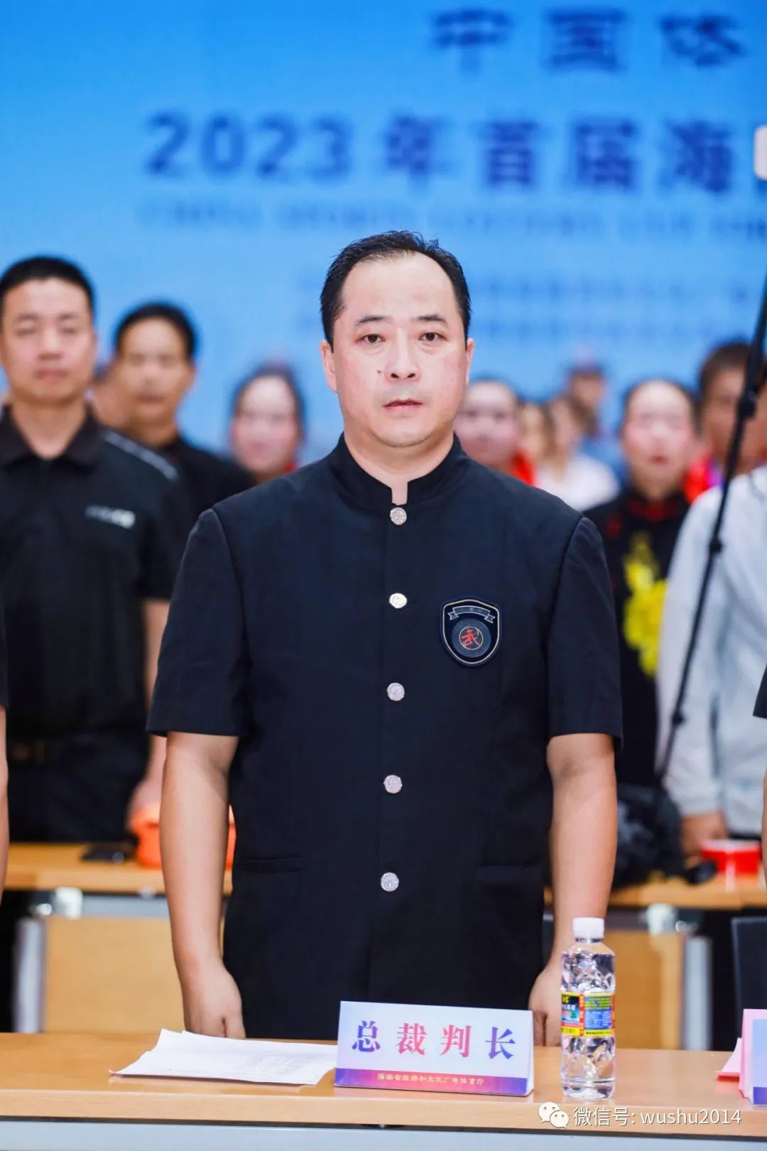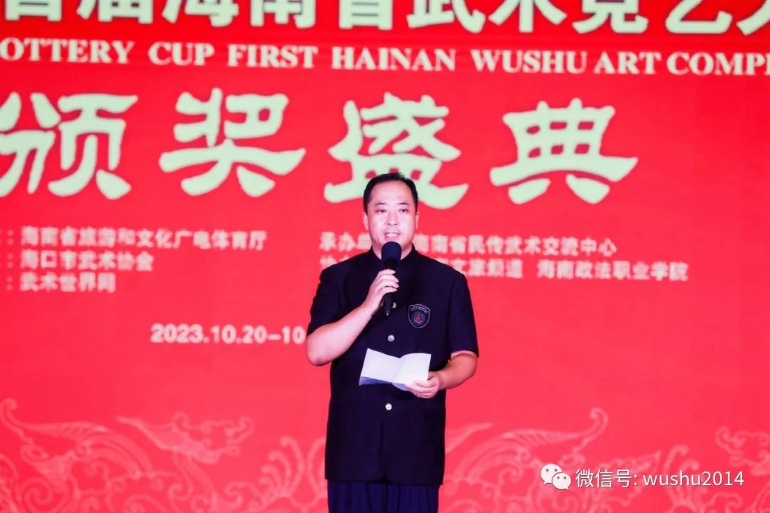 海南省武术竞艺大赛总策划、总裁判长马俊祥宣布比赛成绩