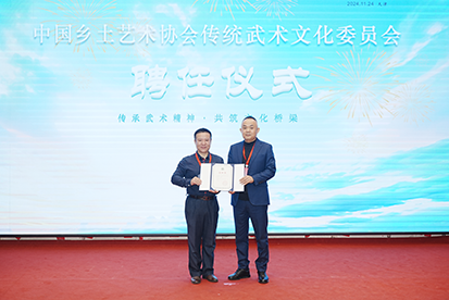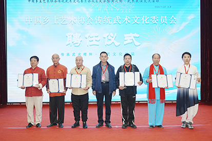 大会上聘请田大华先生、吴景川先生、吕世明先生、张永明先生、葛永志先生、魏宁先生、常保生先生、刘素花女士、赵国华先生、史为民先生为传统武术文化委员会副主任,并由中国乡土艺术协会副会长兼秘书长陈聪海会长颁发聘书。