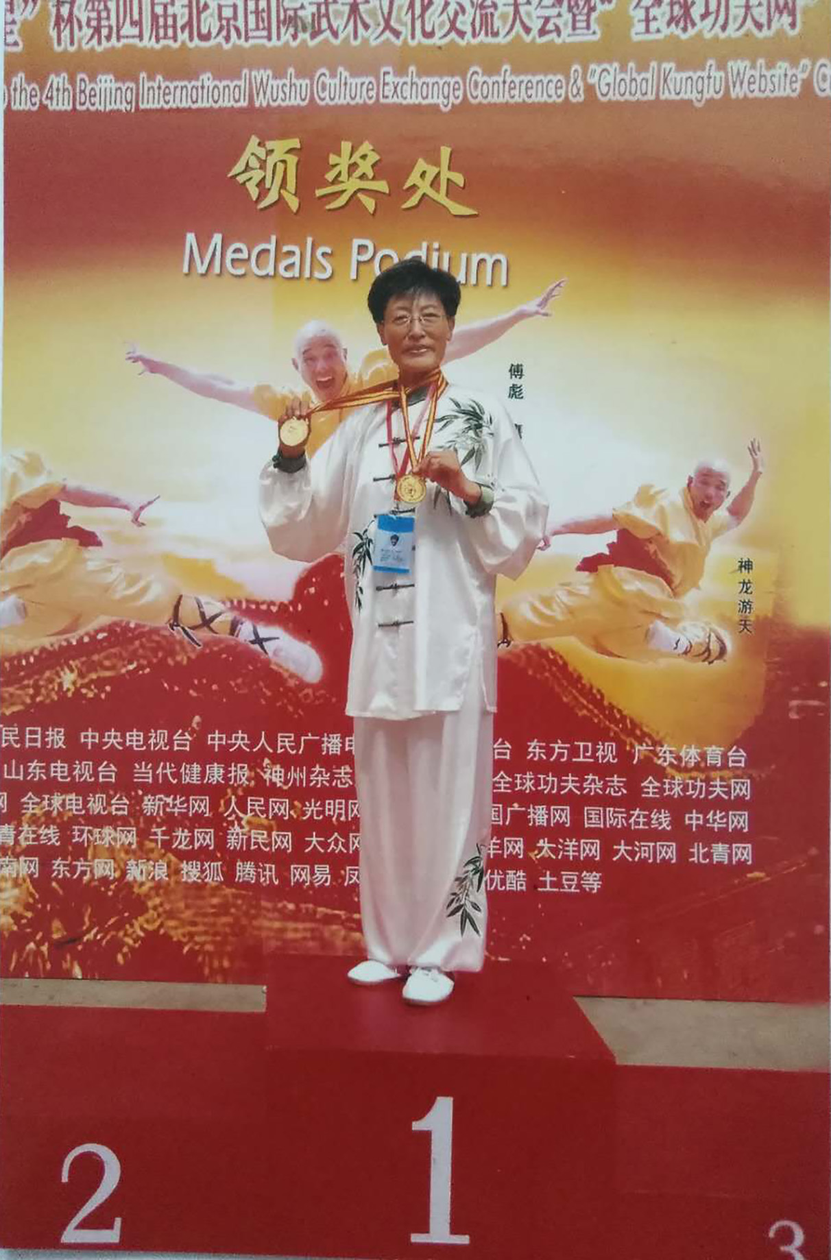 2010年3月8日参加香港第八届国际武术大武术节大赛团体第二名,银牌一枚,个人项目两项第一名,金牌两枚,2010年4月参加北京体育大学第十届国际导引养生功健身气功养生太极个人项目,两个第一名,一项第二名,银牌一枚,金牌两枚,2011年7月参加哈尔滨全国健身气功大赛团体第一名,个人第一名,奖杯证书,2010年8月参加山西大同风凰杯首届武术节大赛养生太极团体赛第一名,奖杯证书,个人项目第一名,金牌两枚,2012年7月24日参加北京体育大学第十一届国际养生太极大赛团体第一名,金杯两个,个人项目金牌两枚,2013年7月16日参加北京国际武术交流大会国际功夫锦标赛个人银牌一枚,金牌两枚,2014年3月参加北京体育大学国际养生功大赛团体两项金杯,两个个人项目金牌三枚,2014年7月25日参加北京国际武术太极文化交流大会本人拳、剑团体第二名,银牌一枚,奖杯一个,个人项目四项金牌四枚,2014年8月参加河北省健身气功团体赛两项第一名、证书,2014年10月参加“亿帮杯”唐山首届武术文化艺术节赛团体第一名,个人项目第一名、证书,2015年7月17日参加北京“全球金融杯”及“功夫网杯”第五届北京国际武术文化交流大会个人项目,拳、剑、掌四项第一名,金牌四枚。