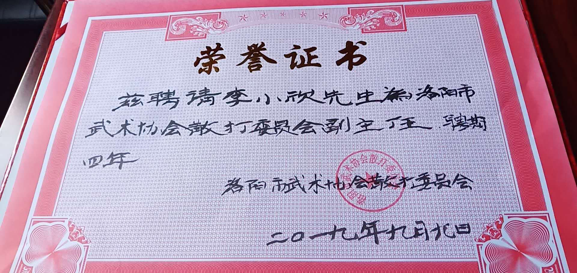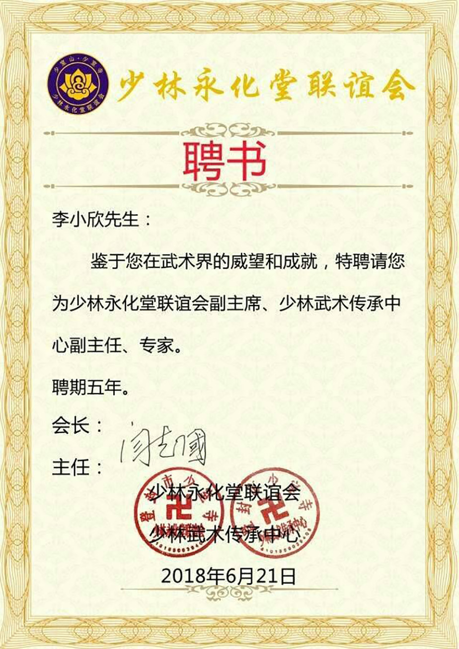 进行了专题报道。2013年,新安武术协会成立,李小欣任首任协会主席,带领新安26名会员获得社会体育指导员证、二级拳师证、二级裁判证:27名会员获得国家武术段位,其中获5段7人,又组织新城小学、王庄小学1200余名学生参加段前级培训,全部通过考试获得证书。2014年,李小欣带领15名武协会员参与洛阳市武术锦标赛,新安武协荣获“道德风尚奖”奖牌。2015年9月,李小欣应邀参加“中华真功夫”系列项目启动仪式暨中国首部纪实功夫电影《寻找真功夫》新闻发布会,并进行形意拳展示。2016年,李小欣参与洛阳春晚《绝活儿》栏目,展示硬气功及形意拳表演并获节目一等奖,所辅导的城关镇王庄小学荣获《河南省武术特色学校》称号。2017年12月,李小欣演示的汉关刀法参与《中国影像志·河南卷·新安篇》拍摄,并在央视播出。2018年4月,李小欣辅导的石寺二中通过省级验收荣获“河南省武术特色学校”称号。