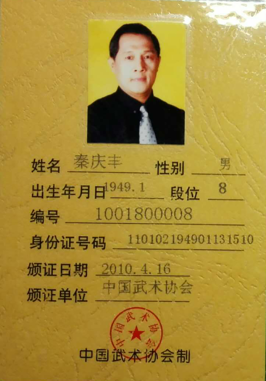 秦庆丰,一九四九年一月生于北京,字安键、号寒石、太和山人,书房 剑箫书斋;祖籍安徽、自幼八岁习武,自幼酷爱武术,8岁开始随父亲秦铁英(曾任保定军校陆军教官兼国术教官)习练少林五形八法拳、大金刚拳、十八罗汉掌等三部拳法;及少林十大功法、中国秘传长寿功及少林镇山棍、金刚大刀、秦门步战刀、紫薇棒、短刀、金刚剑、提炉枪、金锤刺、双手带护门刀等器械;后又从师于周尊佛(北京大学武术协会名誉顾问)习太极拳、太极剑、形意拳、八卦掌等,均有一定造诣。十四岁在家父秦铁英先生(老同盟会员,原保定军校陆军教官,兼国术教官)的严格督教下开始承袭家学。一九八二年参加全国武术观摩交流大会荣获金牌。一九九一年荣获中日武术交流一等奖。一九九三年北京体育运动技术学院运动系毕业,其所训运动员多名荣获国家一级、二级运动员称号,获金牌总数158枚(至2000年止)同年被评为北京市优秀知识分子,并同时晋升为国家武术高级教练。