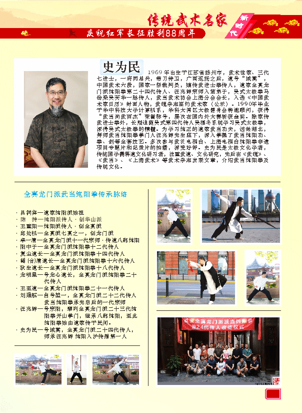 史为民  号诚嵩  全真龙门派二十四代传人,师承汪兆辉 纯阳入沪传播第一人  自此纯阳拳由沪广为流传