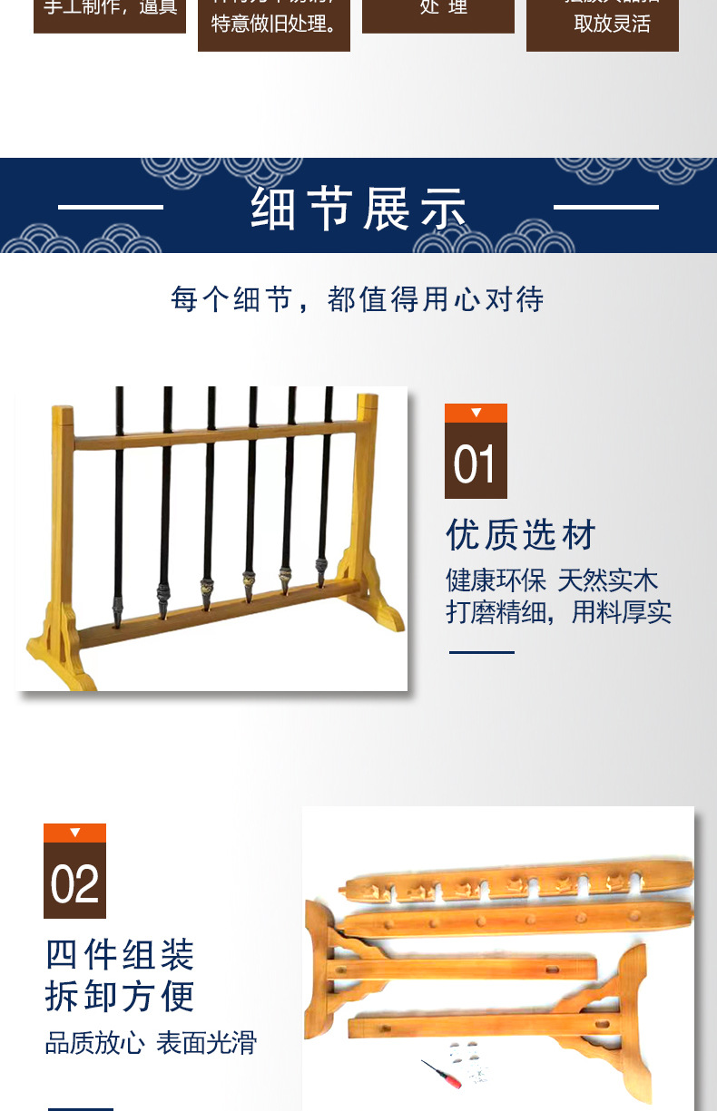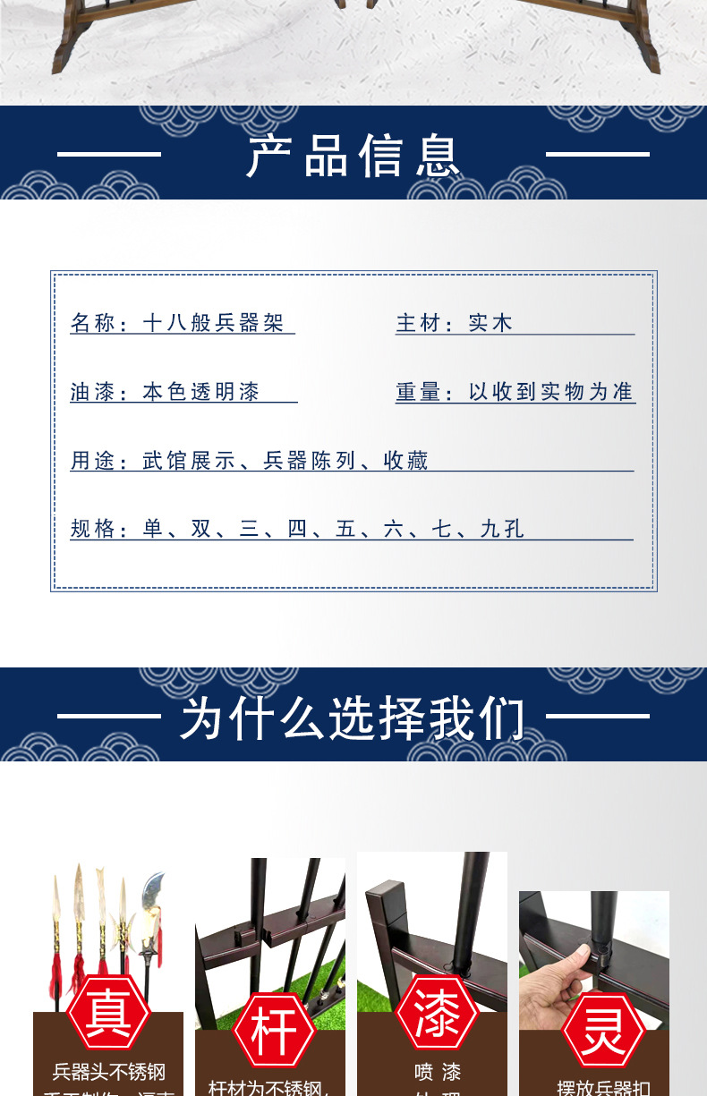 十八般兵器架实木单多孔刀剑架道具摆设架刀枪剑戟锏靶子架工艺
