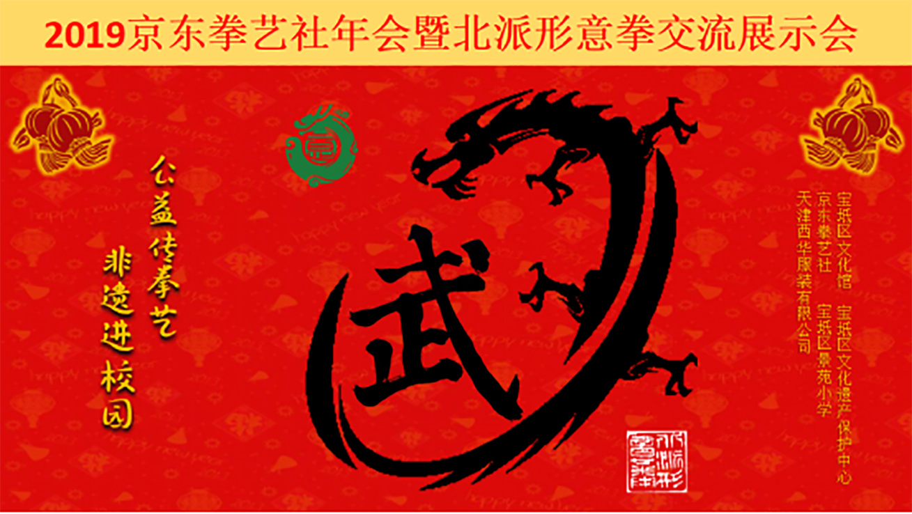 2019年12月,京东拳艺社成员参加宝坻区教育局在全区中小学开展的“弘扬华夏文明传承津沽文化”第八届津沽文化日主题文化传承活动,精彩展示北派形意拳。