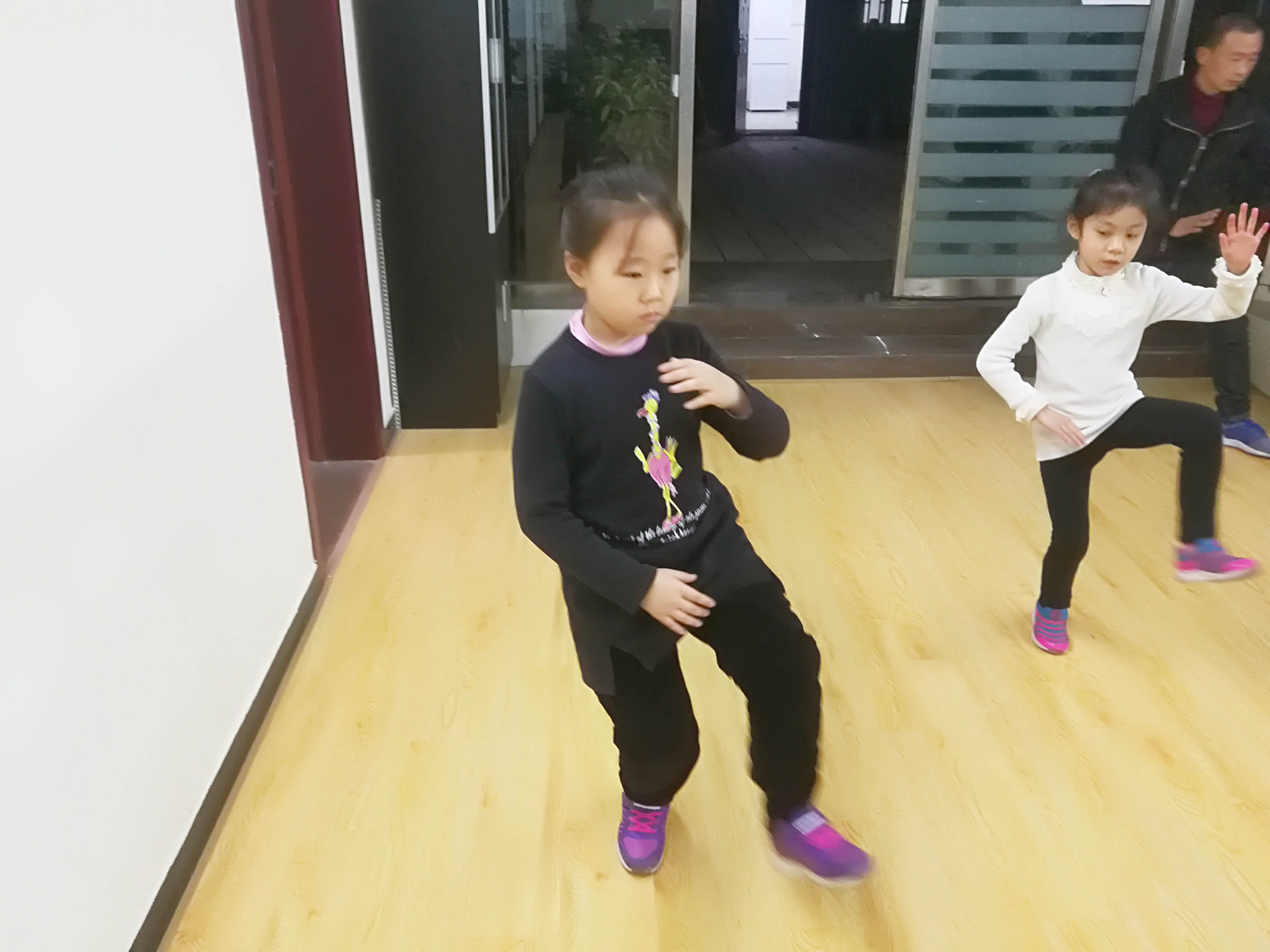 看着孩子们规规正正的一招一式,脸上可爱的笑容。